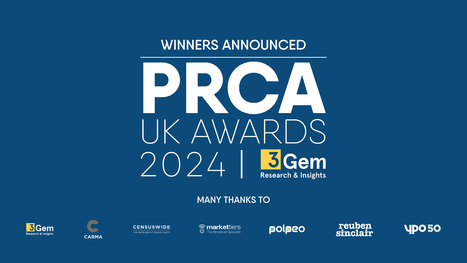 This year’s headline sponsors are 3Gem. Additional sponsorship includes CARMA, Censuswide, Markettiers, Polpeo, Reuben Sinclair and YPO.